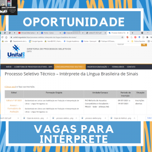 Processo Seletivo Técnico – Intérprete da Língua Brasileira de Sinais
